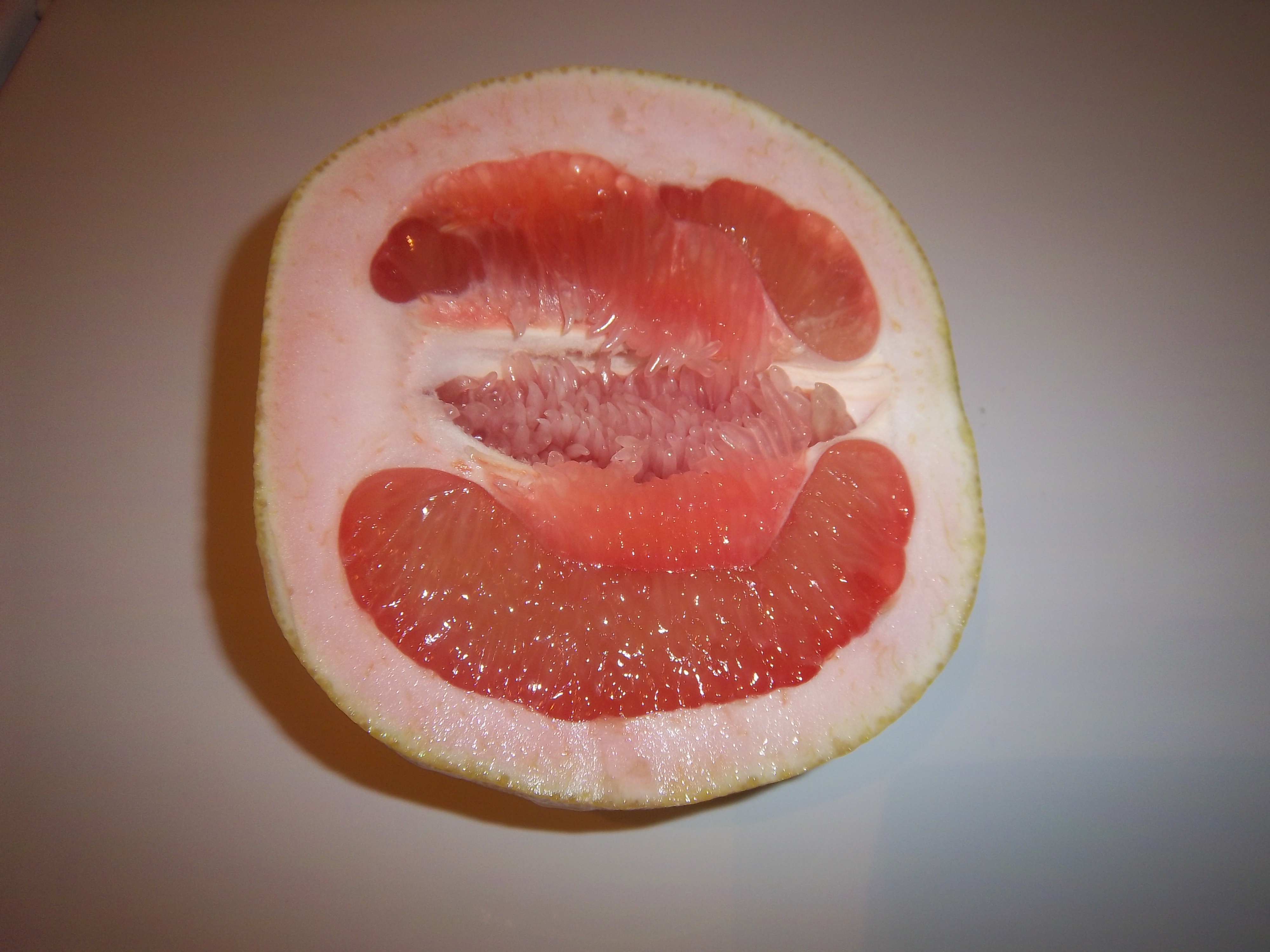 I’ve actually never had pomelo. It smells and looks like a grapefruit, except it’s larger. It’s about the size of a honeydew melon.