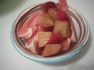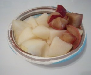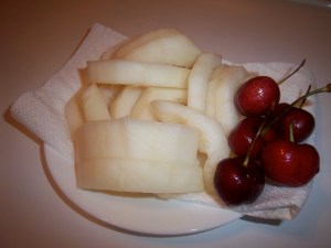The first day went okay. I’m excited about tomorrow’s fruit! To buy just fruit is cool (and simple) on the one hand because I go to only that one area. No going to other aisles for spices, oils, etc. On the other hand, my question was “Is this enough?” as I couldn’t really gauge how much I had. Usually, I buy my regular groceries and only a little fruit ~ enough for a piece or two per day. And there I was buying fruit as my primary food!