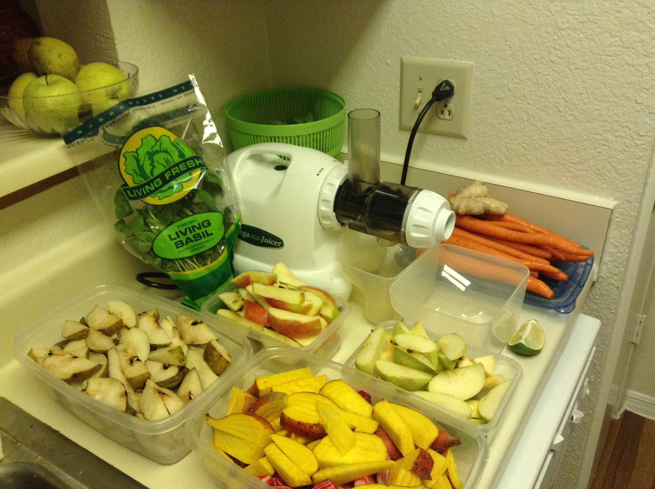 I began preparation for the juice fast itself on Sunday (October 13) — buying any additional organic produce from Whole Foods, as I already get weekly produce boxes from a local CSA, and juicing ahead of time to begin the fast tomorrow.