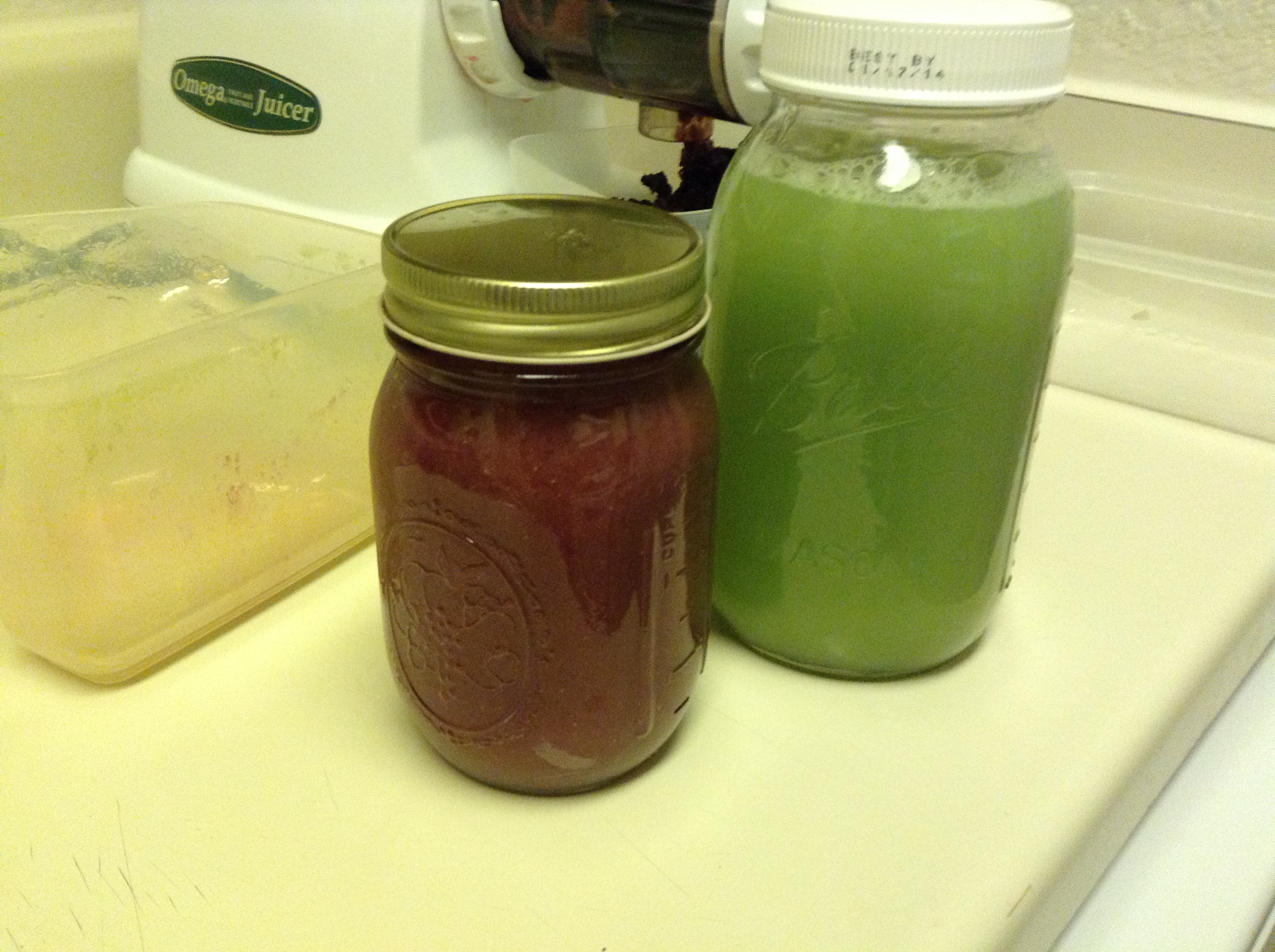 8 oz leftover juice – celery, basil, etc (from Sun)